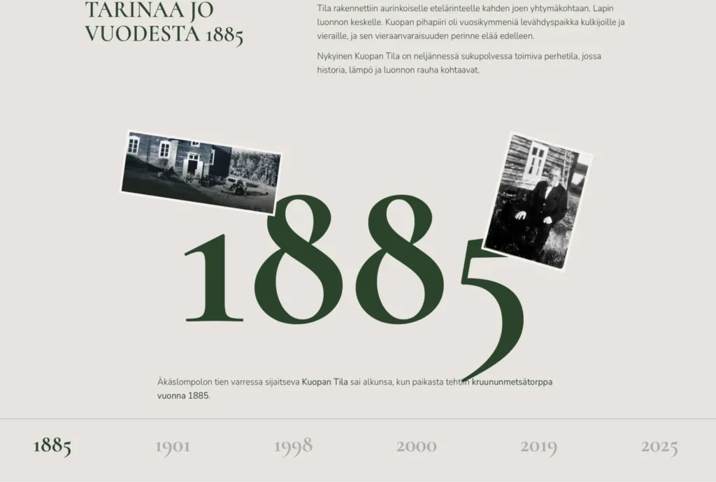 Projektin loppuvaiheessa pystyimme itsekin toteamaan, että kokonaisuudesta syntyi meille mieluisa ja Kuopan tilan henkeä hyvin heijastava sivusto. Seuraamme innolla Kuopan tilan tulevaisuutta ja uskomme, että siitä kasvaa entistä vahvempi osa Ylläksen paikallista kulttuuria.
